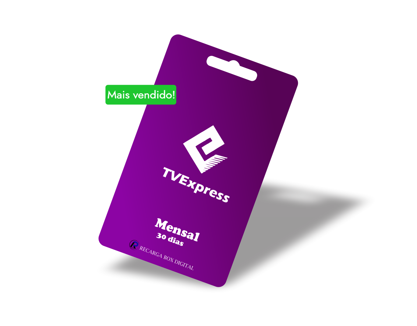Recarga Tv Express Mensal com validade de 30 dias, contados a partir da data de ativação no aplicativo.